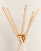 天然素材で作られたナチュラルなデザイン。ティピーには簡単に手早く片づけが可能な収納カバーが付属しています。