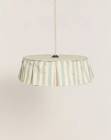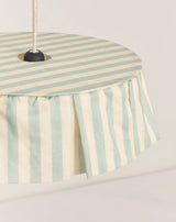 ご自宅のリビングをエレガントで明るく活気のある場所に変えてくれるランプシェードです。ターコイズ色のストライプがさわやかな印象。