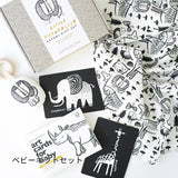 白と黒の、コントラストの強い絵柄は、生まれて間もない赤ちゃんの視覚を効果的に刺激し、資格の発達を助けます。