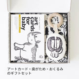 オーガニック素材で作られたライオンの歯がため、1番人気のアートカード、オーガニックコットンモスリンスワドルをセットにしました。