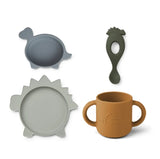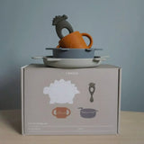 ネコ、恐竜モチーフがかわいいシリコン製テーブルウェア4点セット