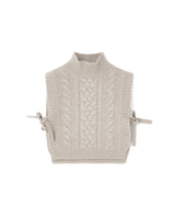 サイドのリボンがポイントのベストで、ワンランク上のお出かけコーデに。