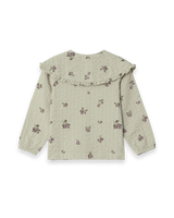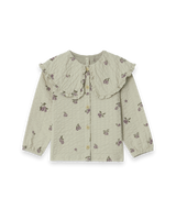 美しいボタニカルなプリントとフリル付きの襟がポイントです。