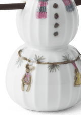 雪だるまの腕は取り外しが可能となっています。体の模様は水彩画で丁寧に1つ1つ描かれています。クリスマスらしいモチーフで松ぼっくり、編み込まれたクリスマスハート、ギフトなどの古典的なクリスマスシンボルです。