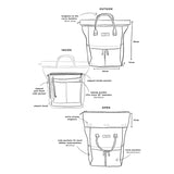 2 つのフック、1 つは内側に、もう 1 つはストラップにあり、鍵、財布、再利用可能なウォーターボトルを保持できます