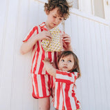 リバーシブルベビーボブ、全体にハンドブロックプリント