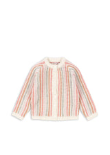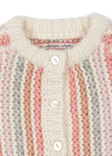 柔らかな色味のストライプが特徴のポップでレトロなデザインがおしゃれなカーディガンです。