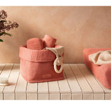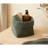 オーガニックコットン100%のソフトバスケット。シンプルなデザインで、高品質の生地が優雅な佇まいです。