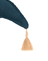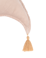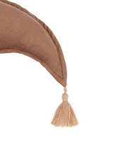 タッセルがおしゃれな月の形をしたフレンチリネン100%のクッション