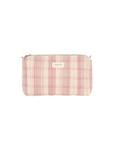 ベビークリーム、おむつなどお出掛けに必要なアイテムを全部収納できる大容量のポーチです。大きく開くジッパーで、出し入れが簡単。しっかりと閉まるので、中身を安全に保管できます。