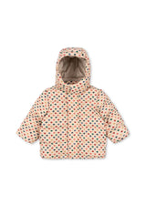 厚手のサーモライトパッドとPUコーティングされた表面を備えた暖かく防水性のあるパファージャケット。普段使いはもちろん、雨や雪遊びの時にも活躍出来ます。