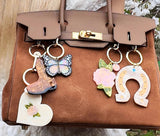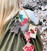一点ずつハンドペイントされたキーチェーンは、シンプルなバッグにちょっとしたアクセントをプラスするだけで、一気におしゃれに!サッと取り外しが出来るフックと、しっかり固定できる2重リングの2WAY仕様。