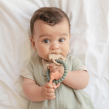 安心安全の100%食品グレードシリコンでできており、赤ちゃんにも安心してかみかみ遊んでいただけます。また、小さな手でも掴みやすいようにデザインされています。歯が生えてきはじめの不快感を歯固めを使って軽減させてあげるのははいかがでしょうか。
