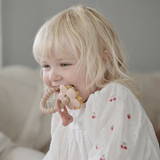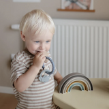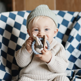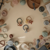 2018年にヒューストンで設立されたベビーブランド『mushie(ムシエ)』のリング型歯固め。北欧らしいシンプルなデザインとニュアンスカラーが特徴です。