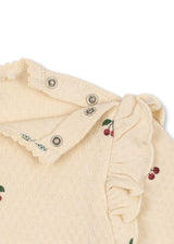 肩のフリルが可愛いチェリー柄の長袖ボディオール