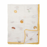 コットン100%でお肌に優しく安心。Bloomingville MINI の世界のかわいいモチーフがあしらわれ、エレガントな黄色の刺繍の縁取りが、さらに高級感を添えています。