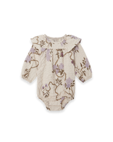ガルボ&フレンズらしい総柄の長袖ボディロンパース。