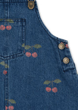 定番人気のチェリープリントのデニムオーバーオールスカート