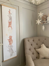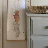 床から60 cm空けて壁に吊るすだけで、子供たちの身長を記録できます。下側の木のバーを取り付けて使用してください。