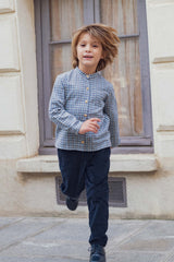 可愛らしいウッドボタンが特徴。シックでモダンなタッチのマオカラーがおしゃれです。シンプルなデザインなので飽きることもなく、どんなボトムスとも相性が良いのでコーディネートの幅が広がります。パパのような大人っぽいカジュアルシャツは特別な日や毎日着られるシャツとして万能アイテムです。