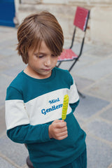 - クリーム&エメラルドグリーンフリースのツートーンスウェットシャツ