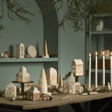 アーバニアは Urban(都市、都会)が語源のシリーズ。今日も世界のどこかで新たな建物が建てられ、変わっていく現代の街並みと同じように、アーバニアの種類もどんどん広がっています。1 つ 1 つハンドメイドでくり抜かれた窓からは、温かく優しい光が漏れだします。夜だけでなく、まだ少し薄暗い朝の時間や夕暮れ時など、時間によって少しずつ表情を変えていくキャンドルの街並みを眺めながら、家の中でゆっくりと流れる時間を楽しんでみるのもおすすめです。