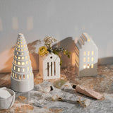 アーバニアは Urban(都市、都会)が語源のシリーズ。今日も世界のどこかで新たな建物が建てられ、変わっていく現代の街並みと同じように、アーバニアの種類もどんどん広がっています。1 つ 1 つハンドメイドでくり抜かれた窓からは、温かく優しい光が漏れだします。夜だけでなく、まだ少し薄暗い朝の時間や夕暮れ時など、時間によって少しずつ表情を変えていくキャンドルの街並みを眺めながら、家の中でゆっくりと流れる時間を楽しんでみるのもおすすめです。