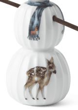 雪だるまの腕は取り外しが可能となっています。体の模様は水彩画で丁寧に1つ1つ描かれています。クリスマスらしいモチーフで松ぼっくり、編み込まれたクリスマスハート、ギフトなどの古典的なクリスマスシンボルです。