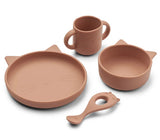 ネコ、恐竜モチーフがかわいいシリコン製テーブルウェア4点セット